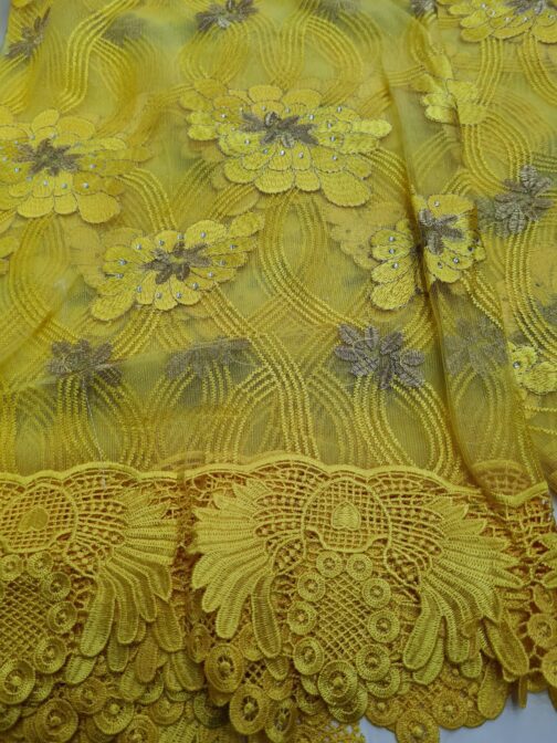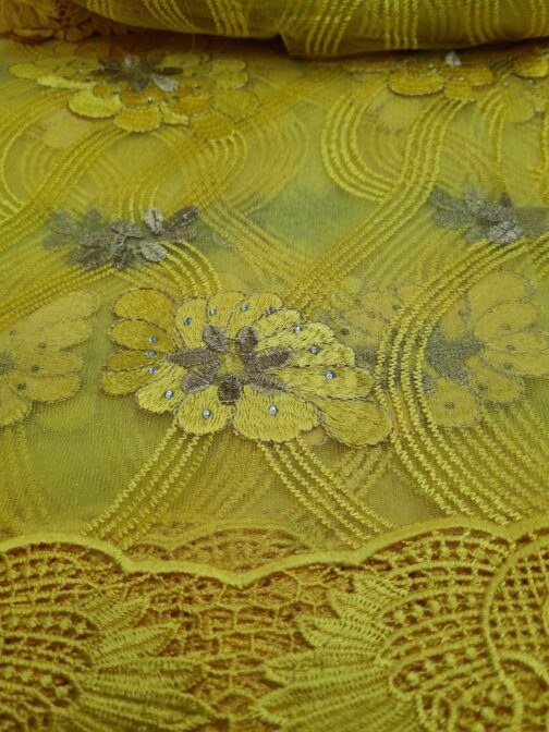 Add a touch of elegance to your creations with this exquisite lace fabric. Featuring a vibrant pattern, this lace is perfect for dresses, blouses, and decorative projects. The intricate design and high-quality material ensure both beauty and durability.