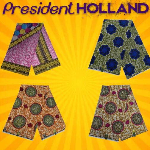 Colorful, Elegant, African Wax Print Fabric. A High Quality Product. Contains Vibrant and Multicolored Designs. Traditional Ghanian and West African Patterns. President Holland is a well known brand famous for its high standard products, for your peace of mind.