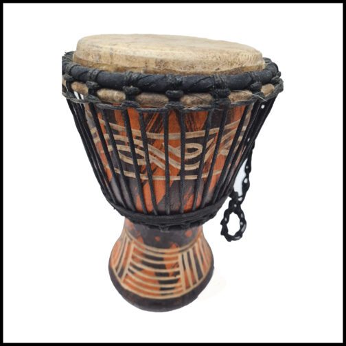A djembe or jembe is a rope-tuned skin-covered goblet drum played with bare hands, originally from West Africa. According to the Bambara people in Mali, the name of the djembe comes from the saying “Anke djé, anke bé” which translates to “everyone gather together in peace” and defines the drum’s purpose.