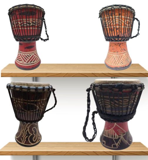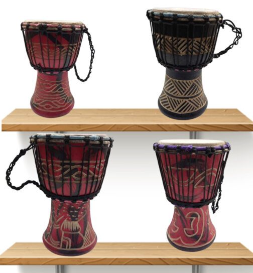 A djembe or jembe is a rope-tuned skin-covered goblet drum played with bare hands, originally from West Africa. According to the Bambara people in Mali, the name of the djembe comes from the saying “Anke djé, anke bé” which translates to “everyone gather together in peace” and defines the drum’s purpose.