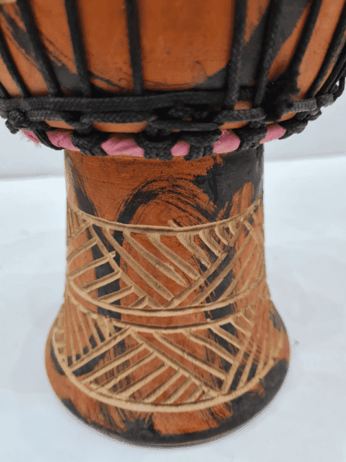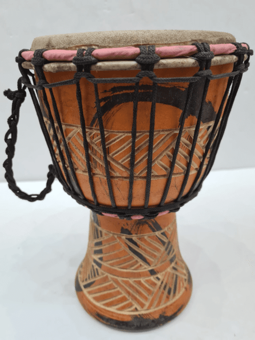 A djembe or jembe is a rope-tuned skin-covered goblet drum played with bare hands, originally from West Africa. According to the Bambara people in Mali, the name of the djembe comes from the saying “Anke djé, anke bé” which translates to “everyone gather together in peace” and defines the drum’s purpose.
