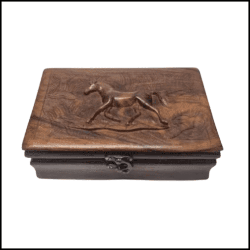 2 reviews for “Elegant Wooden Jewelry Box with Horse Design – Timeless Craftsmanship” 20 x 13cm