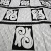 One of the famous design is called Kente. Now it is very popular in whole world . Many Hollywood movies used this designs specially African movies . It is very expanses because hand woven , they make long stripe and stitched together make a sheet .