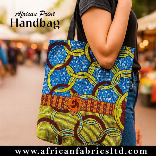 Vibrant Ankara handbag with two handles, secure zipper, and an inner pocket—perfect for everyday use.