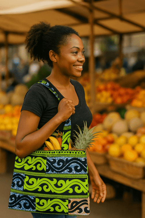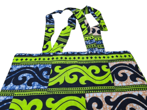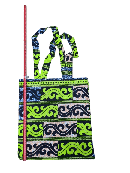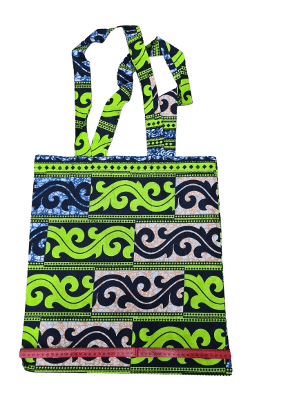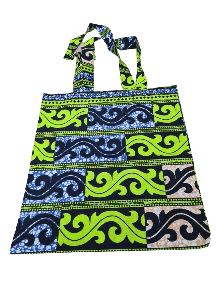 This vibrant tote bag is crafted from high-quality African prints cotton fabric, known for its durability and unique patterns. The bag is not only reusable but also eco-friendly, making it a sustainable choice for everyday use. Featuring long, comfortable handles, this tote bag can easily be slung over your shoulder, allowing for effortless carrying.