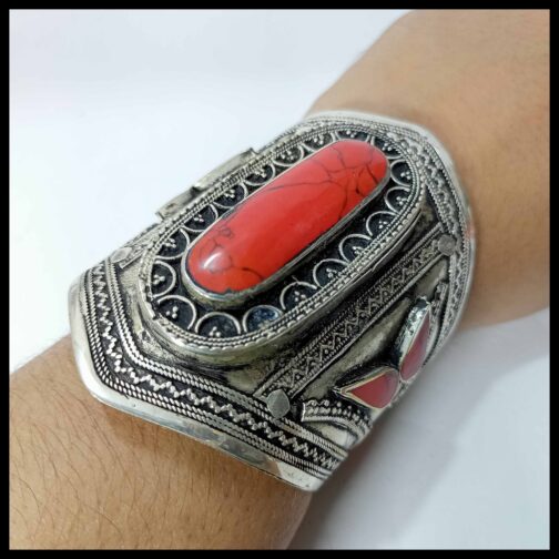 A luxurious assortment of collectible and rare, ethnic,tribal arm bands. Afghan silver engraved silver wristbands . Real silver is liked as a metal of humility. Best, exceptional ,handcrafted wristbands. Slick, delightful, customary ancestral, pounded surface and long cuff wrist bands for ladies. Blue stones makes it more appealing. Bright adornments joins new,old,metal,beads,coins,stones and texture.Afro Clubs provides you with various plans of metal sleeve popular things for party and extraordinary occasions.