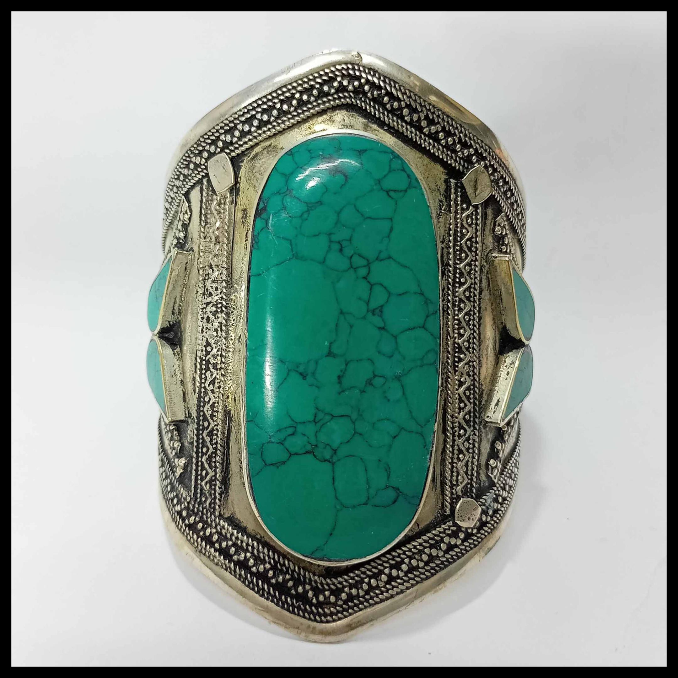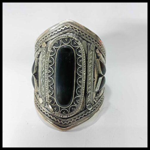A luxurious assortment of collectible and rare, ethnic,tribal arm bands. Afghan silver engraved silver wristbands . Real silver is liked as a metal of humility. Best, exceptional ,handcrafted wristbands. Slick, delightful, customary ancestral, pounded surface and long cuff wrist bands for ladies. Blue stones makes it more appealing. Bright adornments joins new,old,metal,beads,coins,stones and texture.Afro Clubs provides you with various plans of metal sleeve popular things for party and extraordinary occasions.