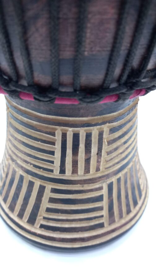 A djembe or jembe is a rope-tuned skin-covered goblet drum played with bare hands, originally from West Africa. According to the Bambara people in Mali, the name of the djembe comes from the saying “Anke djé, anke bé” which translates to “everyone gather together in peace” and defines the drum’s purpose.