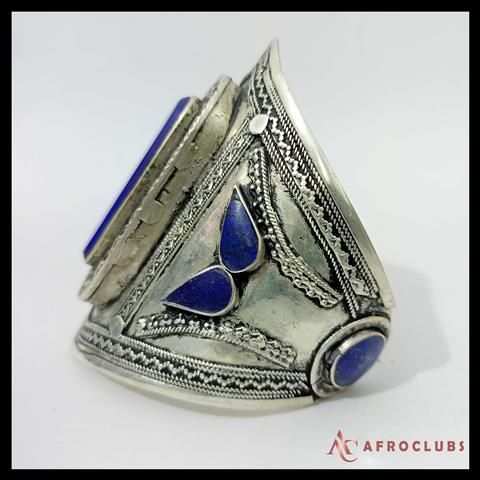 A luxurious assortment of collectible and rare, ethnic,tribal arm bands. Afghan silver engraved silver wristbands . Real silver is liked as a metal of humility. Best, exceptional ,handcrafted wristbands. Slick, delightful, customary ancestral, pounded surface and long cuff wrist bands for ladies. Blue stones makes it more appealing. Bright adornments joins new,old,metal,beads,coins,stones and texture.Afro Clubs provides you with various plans of metal sleeve popular things for party and extraordinary occasions.